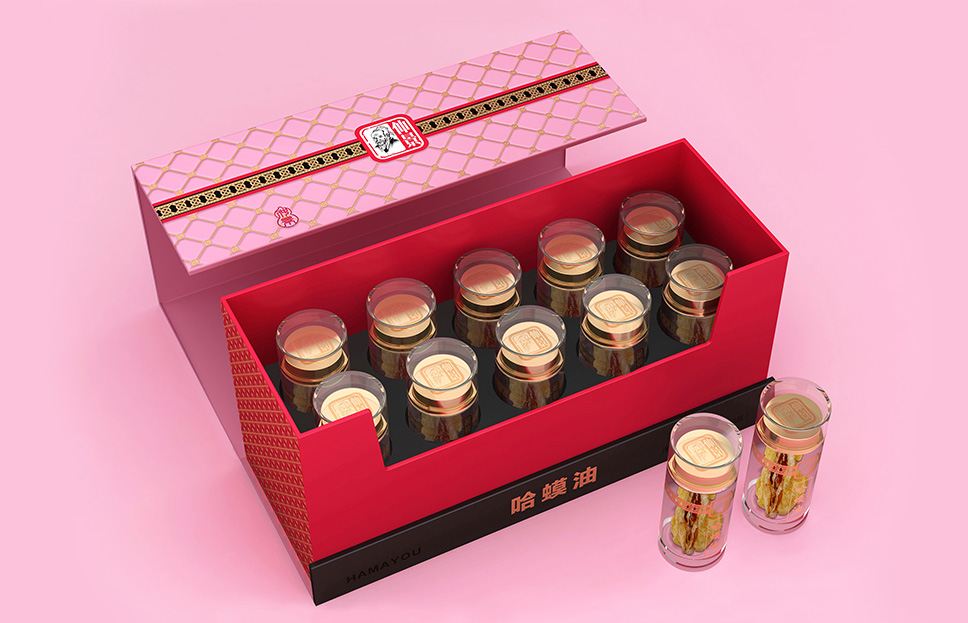 我們走訪了市面上眾多擁有同類產(chǎn)品的藥店,發(fā)現(xiàn)藥店中的這類禮盒都需要打開外盒陳列內(nèi)部產(chǎn)品,這時,內(nèi)部禮盒反而成為了視覺第一接觸點(diǎn)。而那些常見的或圓或方的普普通通的透明亞克力盒,不能體現(xiàn)產(chǎn)品的價值,因此需要重新對包裝造型進(jìn)行開發(fā)設(shè)計。