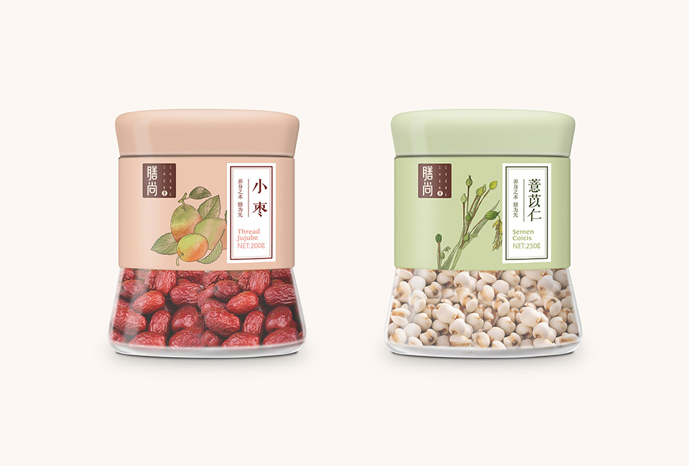 在同類產品還都是普通塑料圓柱瓶的時候,膳尚的包裝造型可以說是非常特別了。這個趣味十足的設計不僅成功與用戶建立情感連接,方便用戶最快形成品牌印象;同時,敦厚的造型展示產品容量滿滿,滿足用戶心理對于產品“量”的需求。