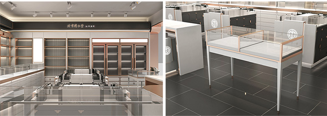 李華清為同仁堂參茸專賣店色彩定位采用了深灰、白和玫瑰金色搭配,使整體店面既有富麗堂皇之氣場,也有清新脫俗之雅韻。一方面與北京同仁堂傳統(tǒng)店面形象區(qū)分開來,另一方面,在傳承傳統(tǒng)文化的同時也對同仁堂文化和形象都進行了升華,使其店面更具視覺特點和識別性傳統(tǒng)出透露出的現(xiàn)代和時尚,符合未來人群的審美情趣。